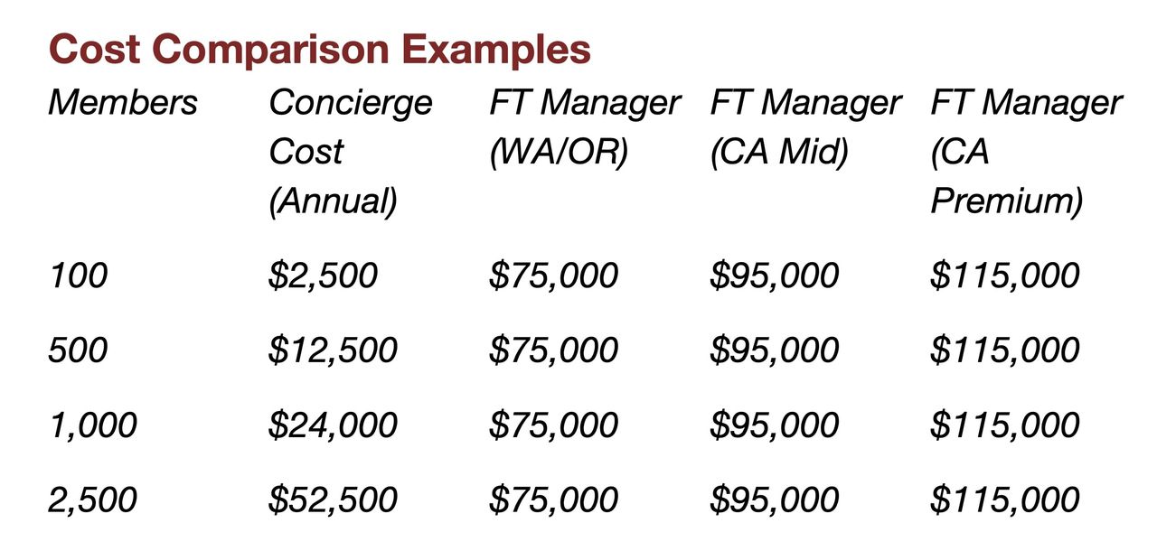 West Coast wineries face rising payroll costs for experienced Wine Club Managers, especially when benefits, payroll taxes, and overhead are included. Woodinville Winery Services has found that an outsourced Wine Club Concierge model delivers materially lower operating costs at every common club size (100–2,500 members), while also eliminating hidden costs tied to turnover, retraining, and unnecessary technology migrations. The result is predictable monthly costs, immediate operational capacity, and the flexibility to scale without adding headcount or switching systems.